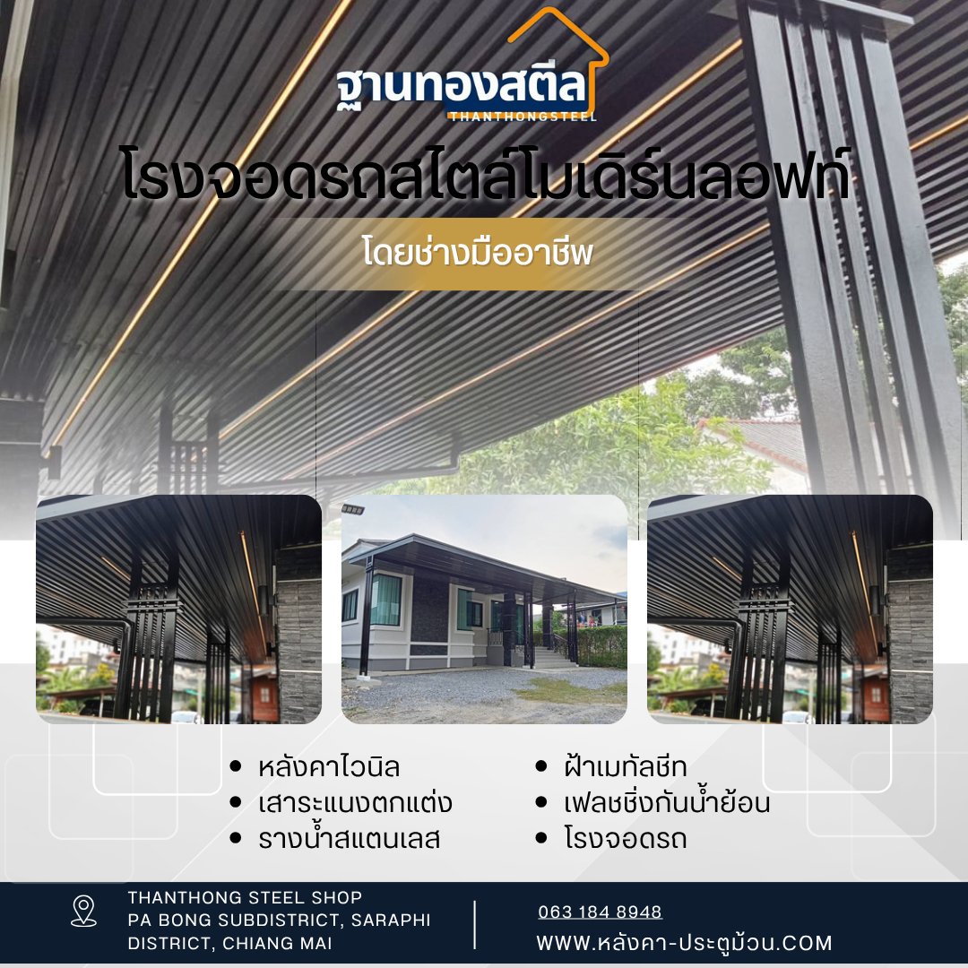 #หลังคาโครงเหล็ก #ต่อเติมหลังคาหน้าบ้าน #โรงจอดรถ #หลังคาห้องครัว #เมทัลชีท #ไวนิล